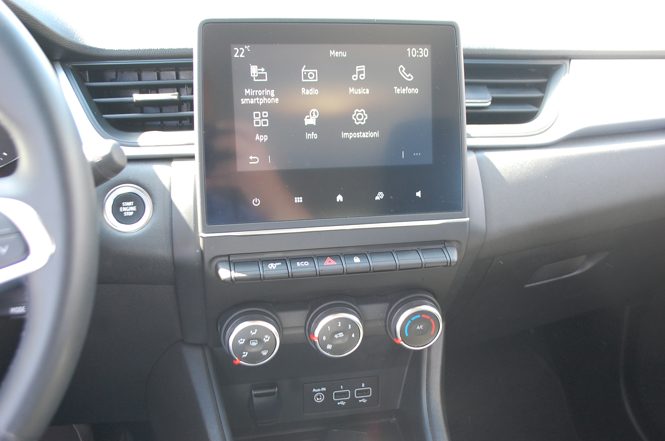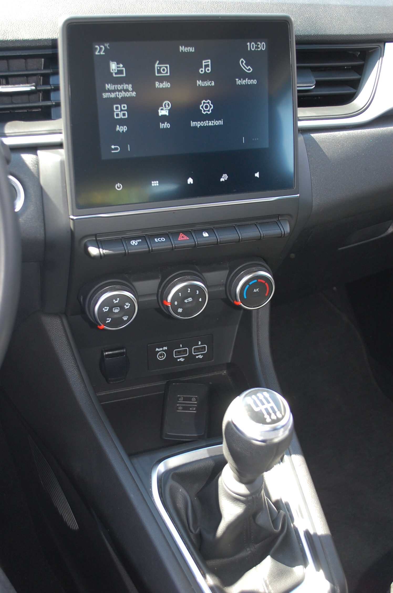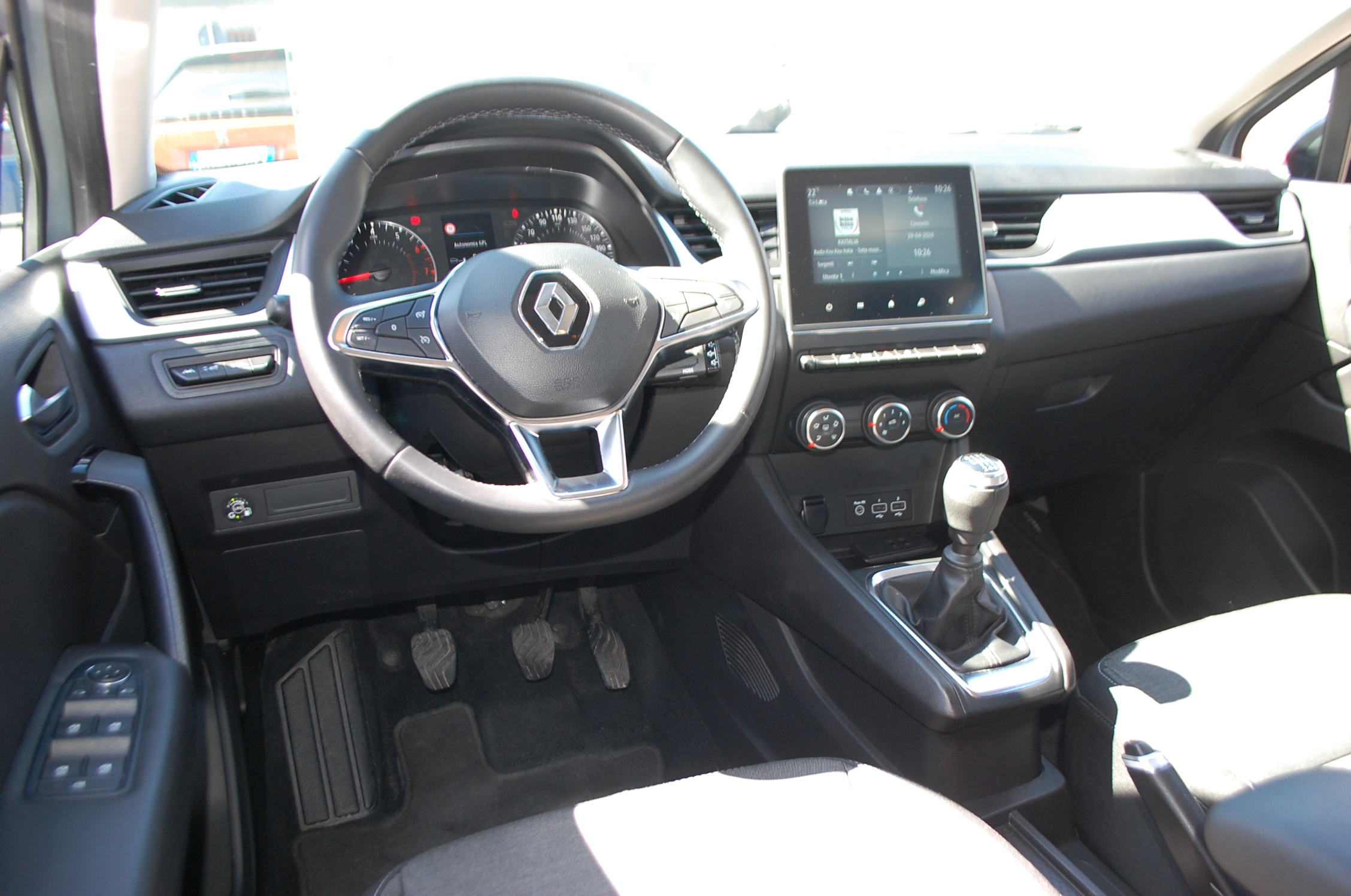 Servosterzo, Immobilizzatore elettronico, ESP, Controllo trazione, Climatizzatore, Area Condizionata, Chiusura centralizzata, Autoradio, Alzacristalli elettrici Anteriore e Posteriore, Airbag Passeggero, Airbag laterali, Airbag, ABS, Interni in Stoffa, Volante in Pelle, Luci diurne a Led, Sensori di Parcheggio Anteriore e Posteriore, Retrocamera, Cruise Control, Bluetooth, USB, App-Connect, Uff Renault Italy.